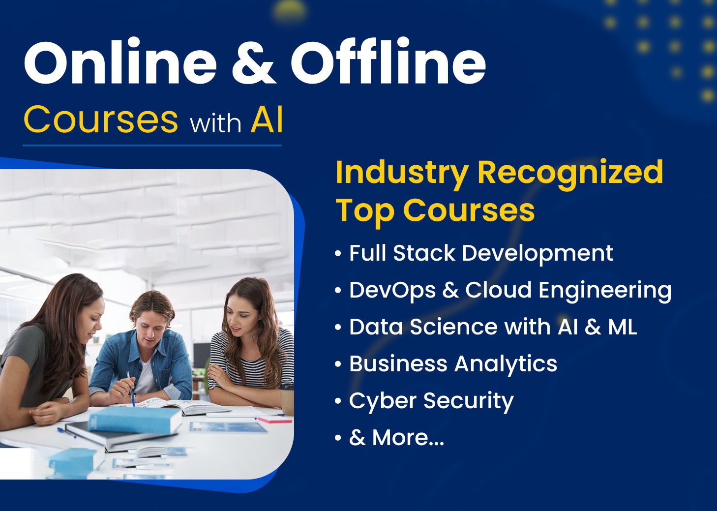 Experience the Expertise: Our renowned instructors deliver personalized guidance through live video sessions, tailored to both novice and seasoned professionals. Our extensive range of courses, featuring complimentary sessions and unbeatable webinar deals, delve into the fundamentals and advanced topics of Full Stack Development, Digital Marketing, Front-End Development, Business Analysis, and many more...